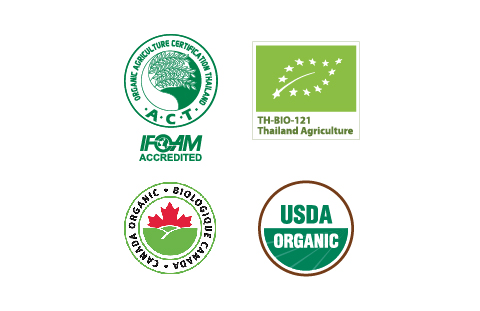 ได้รับรองมาตรฐานเกษตรอินทรีย์ จากประเทศแคนาดา (COR) และ ประเทศสหรัฐอเมริกา (USDA)